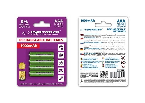 Akumulatorki Esperanza łączą najnowszą technologię nowoczesnych akumulatorków niklowo-wodorkowych z zaletami tradycyjnych baterii alkalicznych i