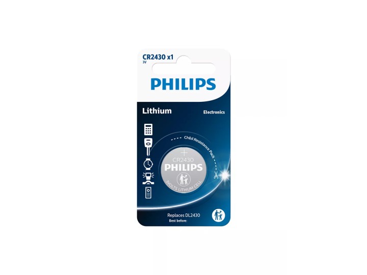 Bateria Philips Lithium CR2430 to wysokiej jakości ogniwo przeznaczone do urządzeń elektronicznych o małym poborze prądu takich jak zegarki, kalkulatory, piloty, urządzenia optyczne, zabawki oraz inne urządzenia potrzebujące długiego niezawodnego zasilania.