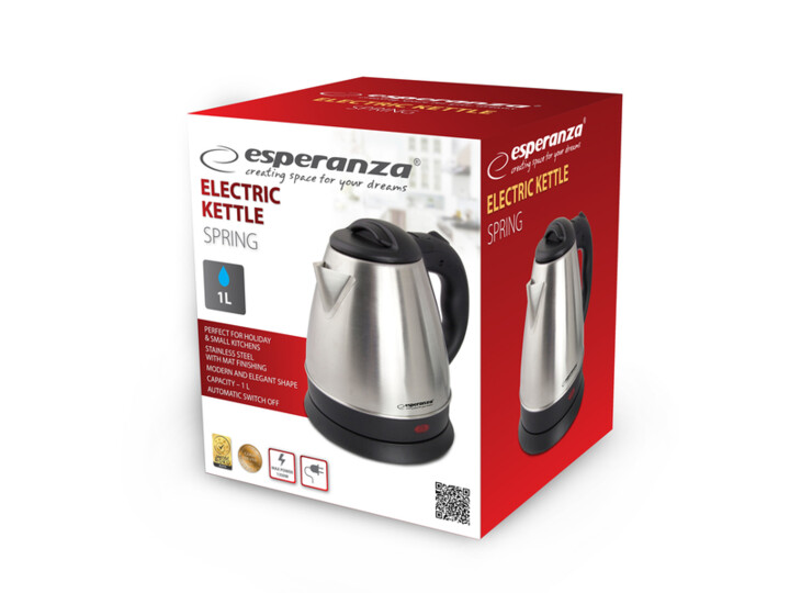 Bezprzewodowy czajnik Esperanza SPRING sprawdzi się zarówno na wyjeździe jak i w małej kuchni, gdzie nie zajmie dużo miejsca.