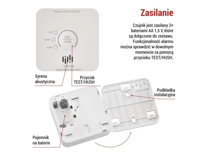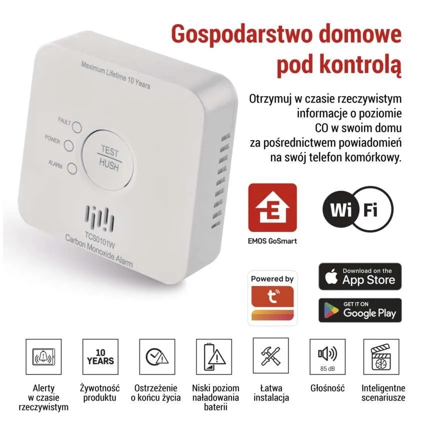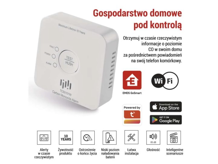 GoSmart detektor tlenku węgla TCS0101W z WiFi