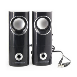 Wysokiej jakości stereofoniczne głośniki do notebooków i komputerów stacjonarnych. Gwarantują czyste i naturalne brzmienie dźwięku. Elegancki wygląd sprawia, że doskonale komponują się na biurku z monitorami LCD i innymi akcesoriami. Współpracują ze wszystkimi komputerami posiadającymi wyjście głośnikowe i wyjście USB. Posiadają wbudowany wyłącznik, regulację głośności oraz wyjście słuchawkowe. Wysokiej jakości materiały użyte do produkcji zabezpieczają przed elektryzowaniem się i przed generowaniem zakłóceń elektromagnety