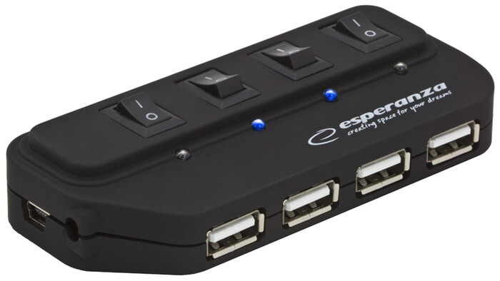 4 PORTOWY HUB USB 2.0 Z WYŁĄCZNIKAMI Idealny dla użytkowników notebooków i komputerów stacjonarnych