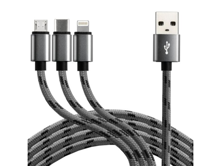 KABEL 3w1 USB-C/ iPh/ mikro 1,2 m everActive CBB-1,2MCI 2,4A szary