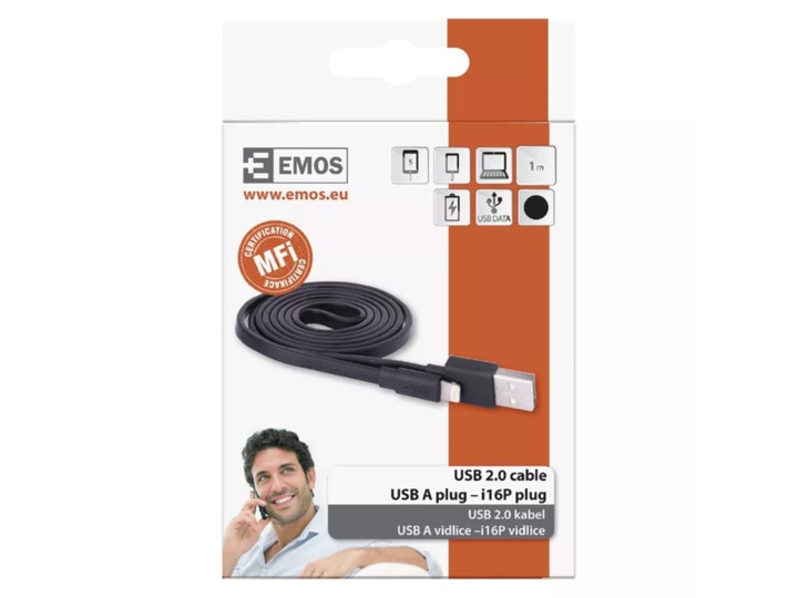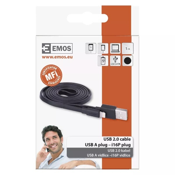 KABEL EMOS USB2,0 A/M-i16P/M 1M (SM7013BL) czarny ( do tel.iPhone) płaski