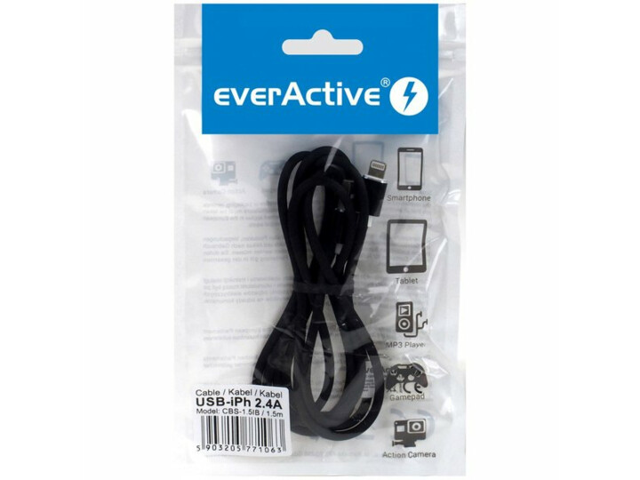 KABEL iPh 1,5 m everActive CBS-1,5/B do 2,4A silikon czarny