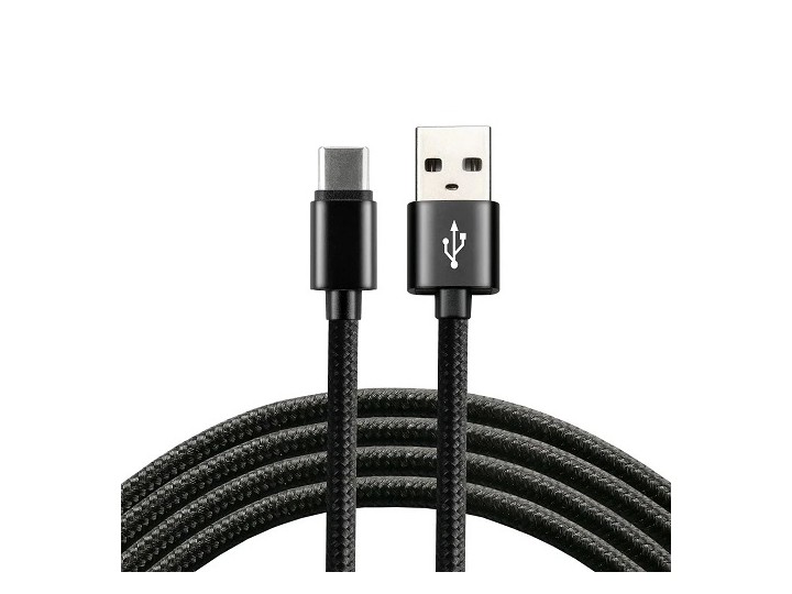 Kabel przewód pleciony USB - USB-C / Typ-C everActive CBB-1.2CB 120cm z obsługą szybkiego ładowania do 3A czarny