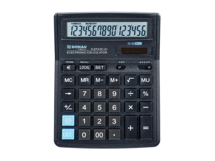 - Kalkulator biurowy z 16-cyfrowym wyświetlaczem z zasilaniem bateryjno-solarnym