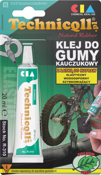 Bardzo elastyczny klej na bazie naturalnego kauczuku. Do łączenia elementów wykonanych z gumy, materiałów powlekanych i gumo-pochodnych. Tworzy mocną i elastyczną spoinę odporną na zmienne warunki atmosferyczne.