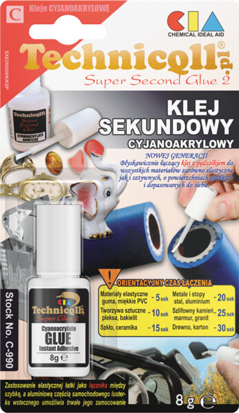 KLEJ SEKUNDOWY 8g TECHNICQLL (z pedzelkiem)
