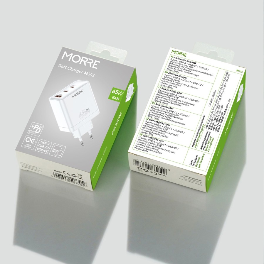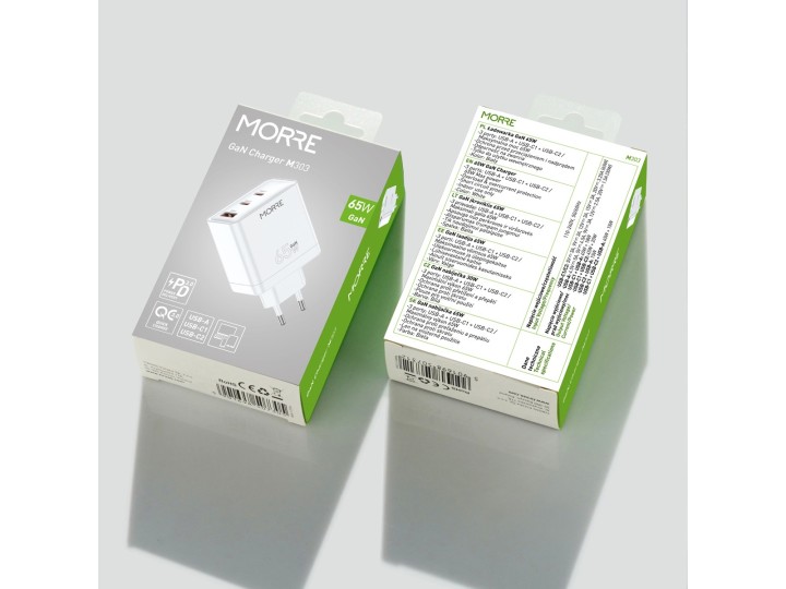 ŁADOWARKA SIECIOWA MORRE M303 65W USB-A/ 2xUSB-C Biala