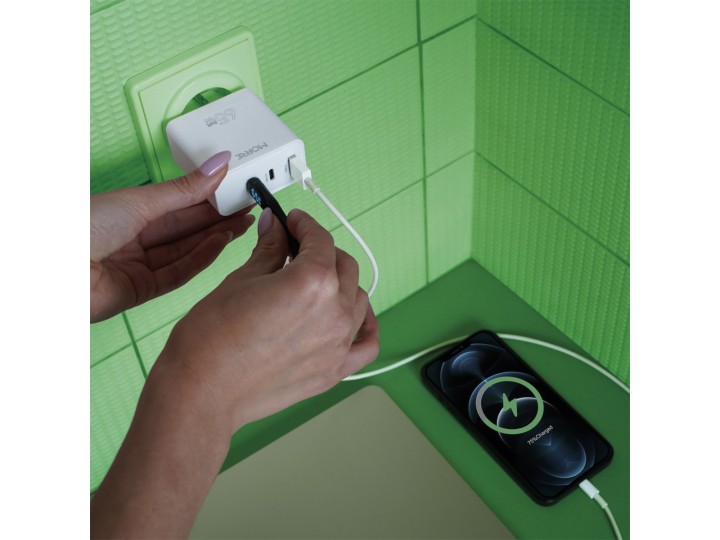 - 3 porty: USB-A / 30W i 2x USB-C / 65W