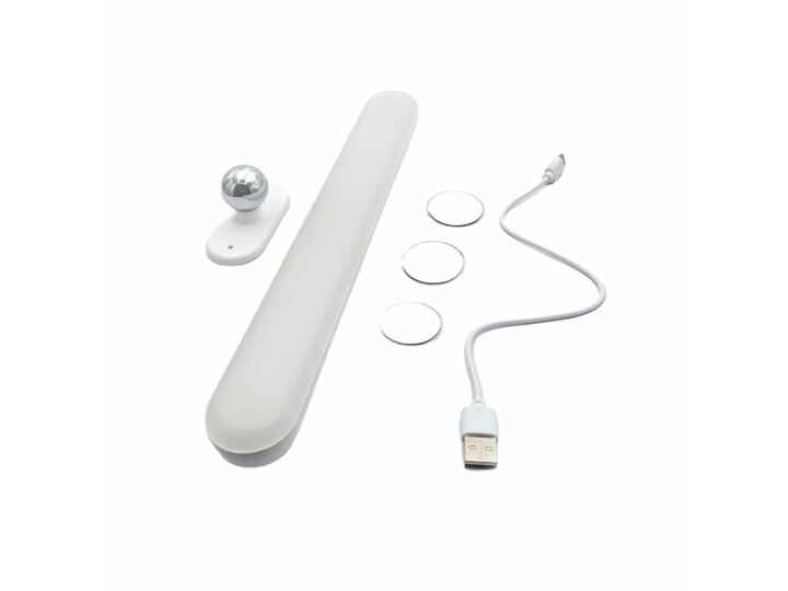 w zestawie: kabel USB-C (około 25 cm), samoprzylepne mocowanie magnetyczne, oraz baza z kulką,