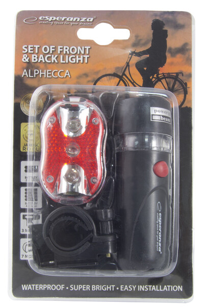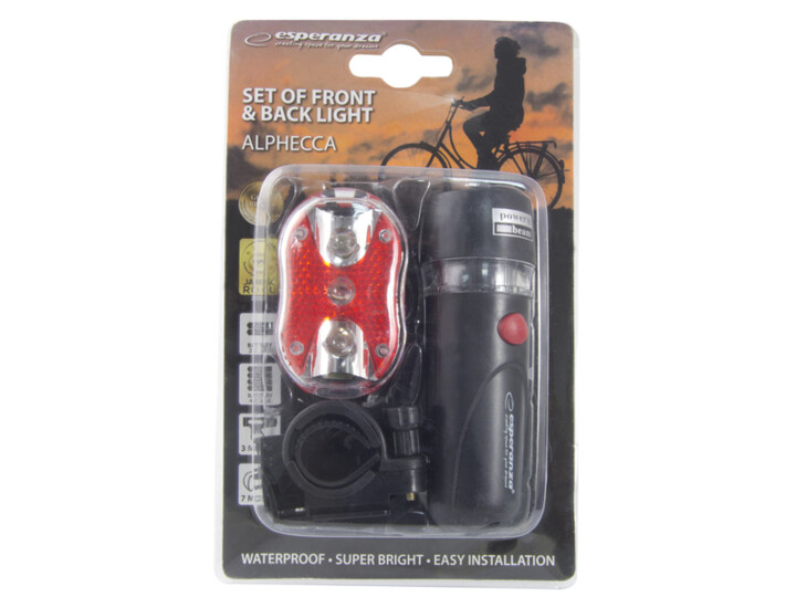 Zestaw lampek rowerowych Esperanza ALPHECCA o oszczędnym źródle światła LED.