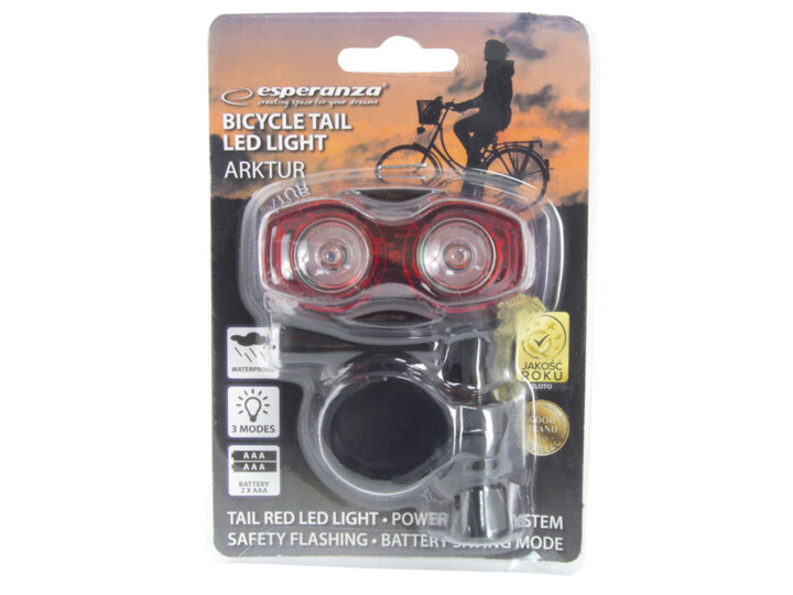 Lampka rowerowa tylna Esperanza ARKTUR posiada 2 mocne diody LED, emitujących silne, czerwone światło. Dzięki lampce ARKTUR