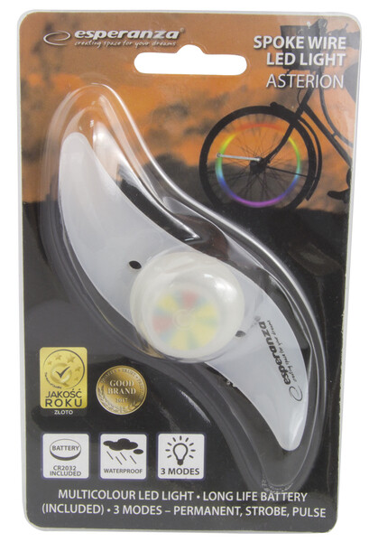 Lampka rowerowa szprychowa Esperanza ASTERION wyposażona jest w diody, które podczas jazdy świecą różnymi kolorami.