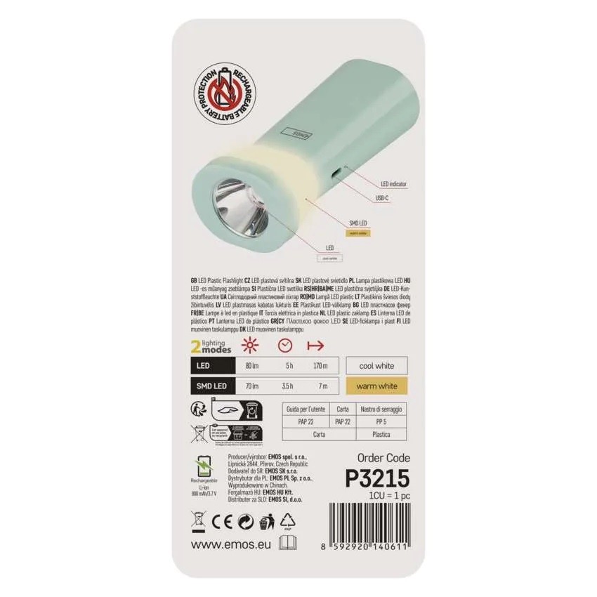 LATARKA EMOS ŁADOWALNA LED+SMD 80Lm Li-Ion 800mA P3215