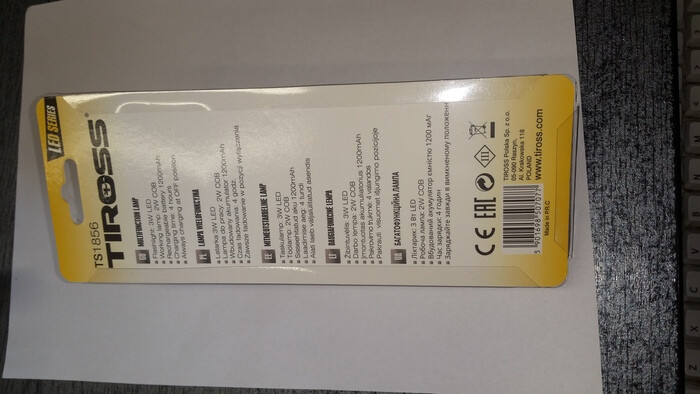 LATARKA TIROSS TS-1856 Wielofun. 3WLED 2W COB 1200mA Li-Jo.