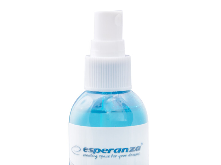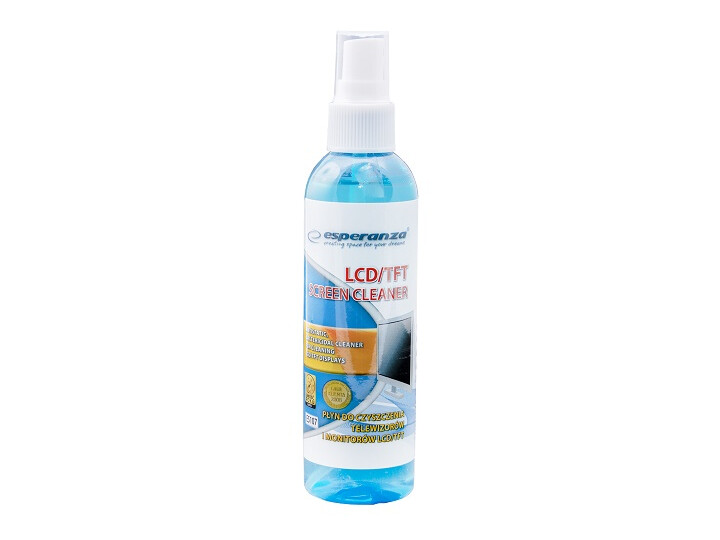 Antystatyczny, bakteriobójczy płyn do czyszczenia wszelkiego rodzaju wyświetlaczy ciekłokrystalicznych LCD/TFT w laptopach, palmtopach, telewizorach LCD itp. Butelka posiada łatwy w użyciu atomizer. Usuwa nawet uciążliwy brud. Nie pozostawia smug. Nie zawiera alkoholu. Niewielką ilość płynu należy nanieść na chusteczkę bezpyłową Esperanza i czyścic monitor.
