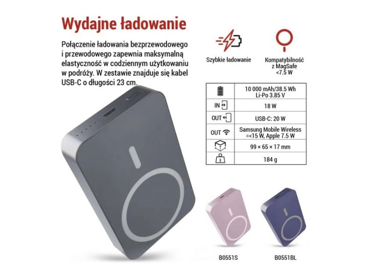 zawiera przewód USB-C/USB-C,szybkie ładowanie PD 20 W
