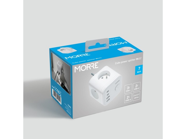 ROZGAŁĘZIACZ KOSTKOWY - 3 gniazda AC + 2x USB-A + 2x USB-C