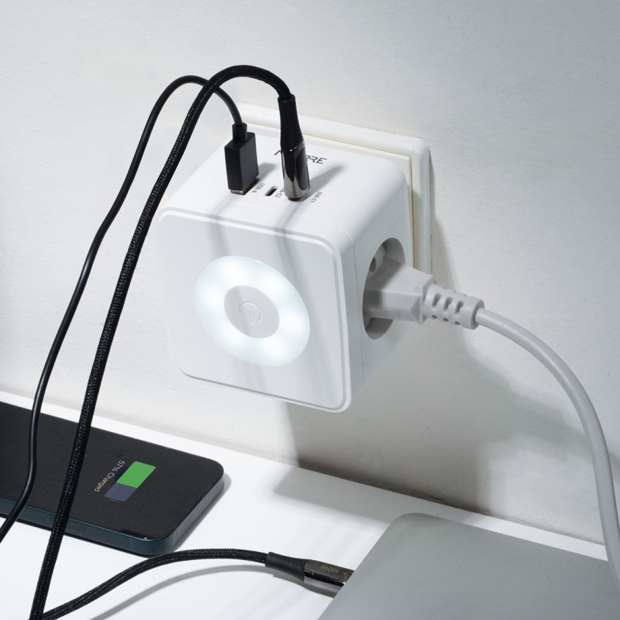 ROZGAŁĘZIACZ KOSTKOWY - 2 gniazda AC + USB-A + 2x USB-C