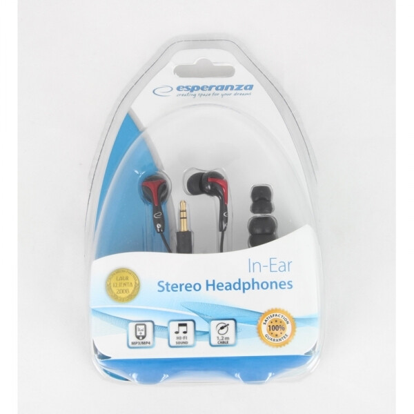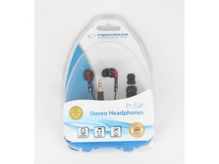 Słuchawki douszne do odtwarzaczy audio, MP3/MP4, komputerów i innych urządzeń posiadających standardowe wyjście audio. Wyposażone zostały w trwałe, łatwo dopasowujące się do kształtu ucha, tłumiące zewnętrzne hałasy wkładki gumowe. Posiadają wzmocniony efekt odtwarzania basów. W komplecie 2 zapasowe nakładki gumowe różnych rozmiarów. Kolor czarno - bordowy.