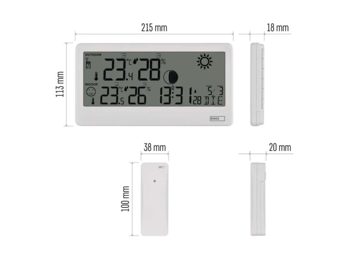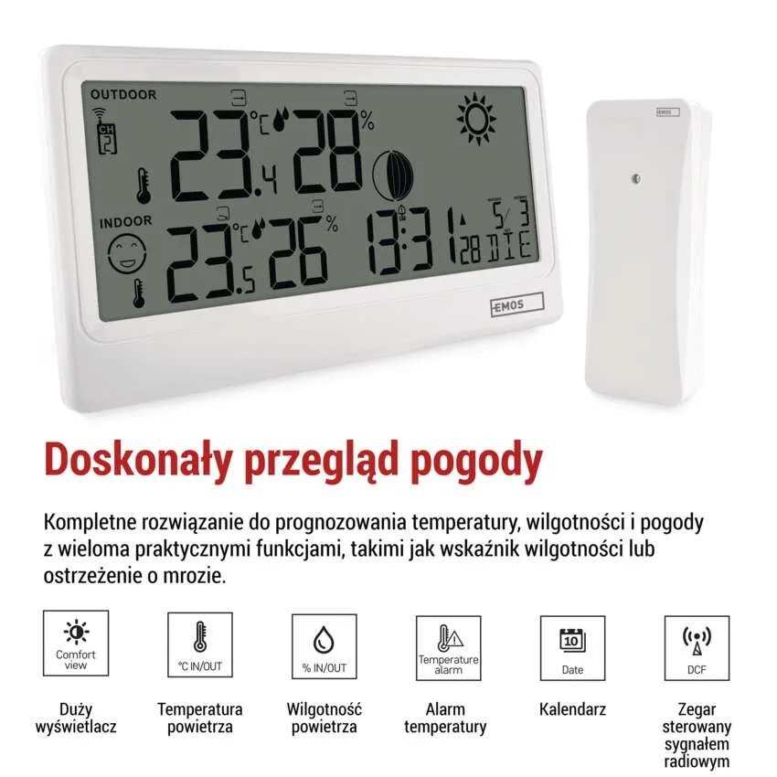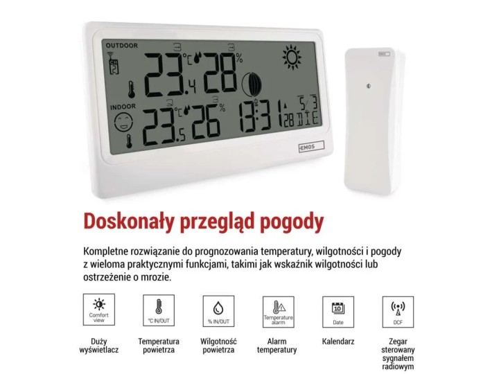 temperatura zewnętrzna -40 °C do +70 °C, rozdzielczość 0,1 °C