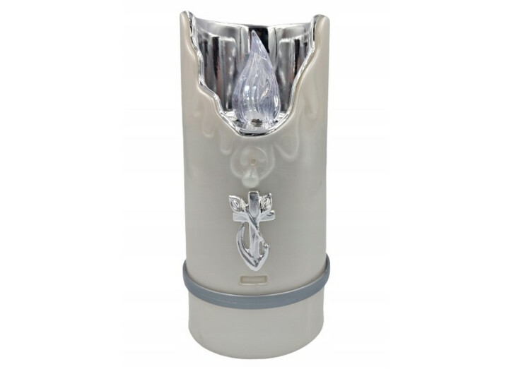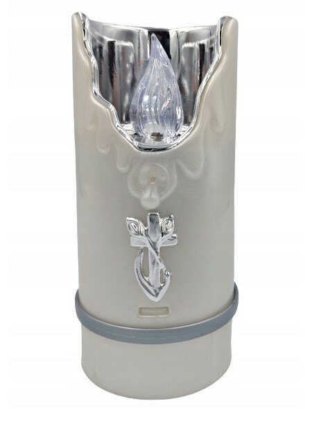 ŚWIECZKA-ŚWIECA DUŻA-WOSK srebrna+biały płomień znicz elektr. (6szt)