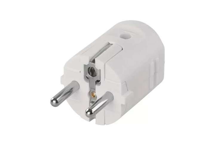 Klasyczna wtyczka do przedłużacza ruchomego z praktyczną możliwością odwrócenia połączenia wewnętrznego.