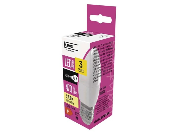 Żarówka LED Classic świeczka / E27 / 4,9 W (40 W) / 470 lm / ciepła biel