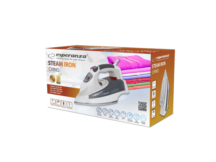 Żelazko parowe Esperanza CHINO doskonale sprawdzi się w każdym gospodarstwie domowym. Wyposażone jest w takie funkcje jak wyrzut pary