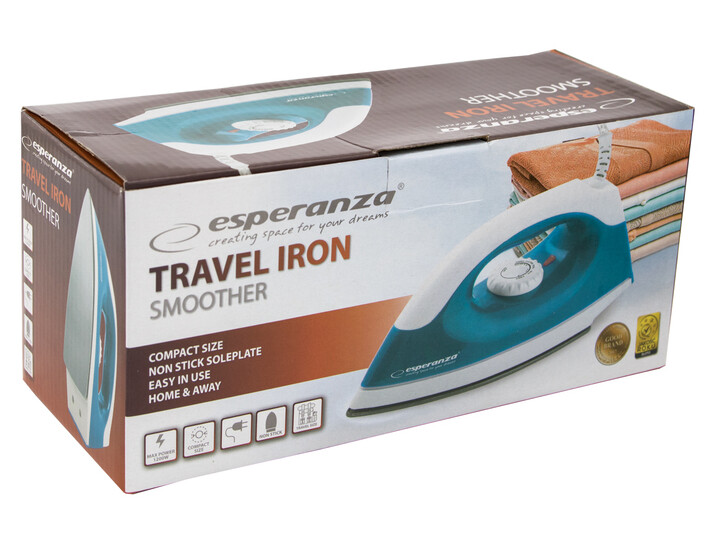 Turystyczne żelazko Esperanza SMOOTHER doskonale sprawdzi się przede wszystkim na wyjeździe, ale nic nie stoi na przeszkkodzie, by na stałe używac go w domu. Żelazko jest małe, lekkie i poręczne, a przede wszystkim bardzo łatwe w obsłudze.